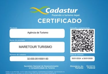 A nossa Empresa segue todas as exigências do Ministério do Turismo e autoridades competentes para te proporcionar um serviço com seriedade, eficiência e responsabilidade.