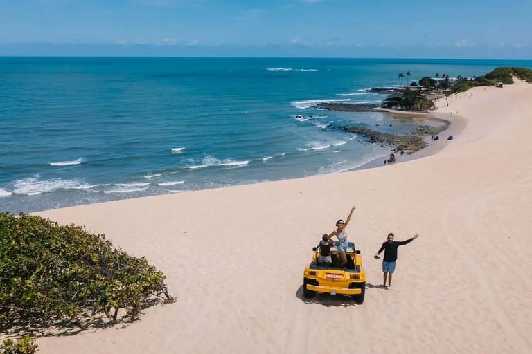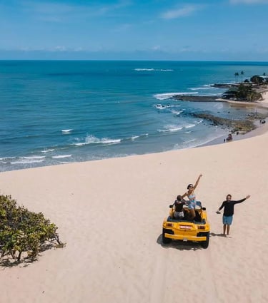✅O passeio de buggy no litoral norte de Natal é uma experiência popular, oferecendo paisagens variadas e atrações como as dunas de Genipabu, a Lagoa de Jacumã e a travessia de balsa. É possível escolher entre passeios privativos ou compartilhados, com diferentes empresas oferecendo o serviço.