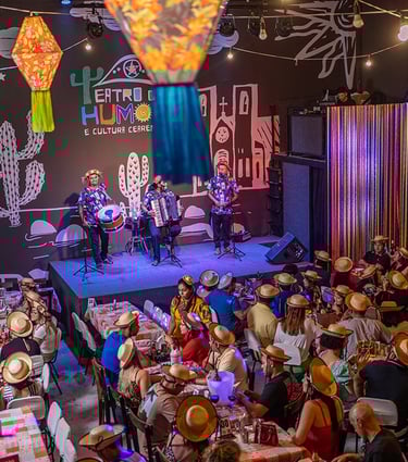 ✅O Teatro do Humor é uma das principais experiências de entretenimento noturno em Fortaleza, unindo humor ao vivo, música nordestina, cultura local e restaurante com pratos e sobremesas regionais. Com apresentações de comédia, interação com a plateia, música ao vivo e opção de consumo durante o show, o espaço oferece uma noite leve e divertida para moradores e turistas. Ideal para casais, grupos de amigos e viajantes que buscam o que fazer à noite em Fortaleza."